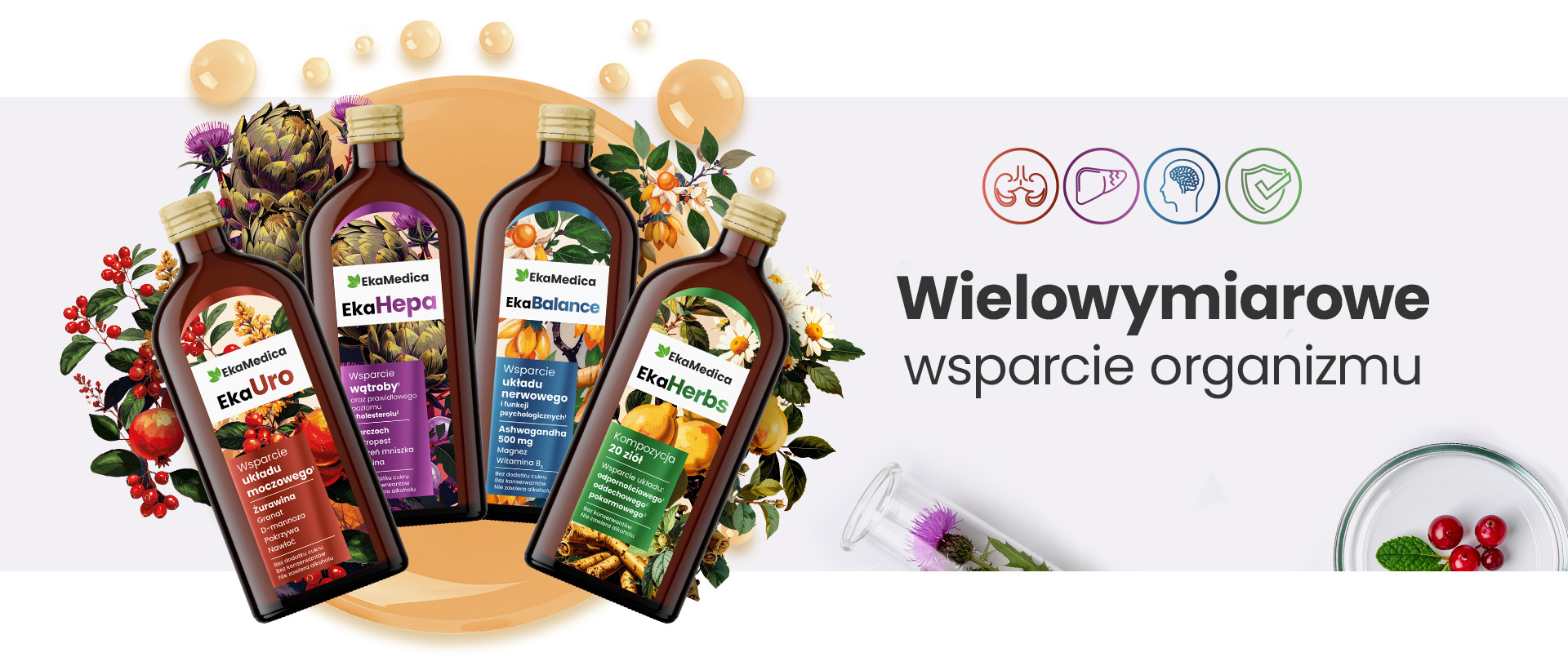 EkaBotanic to nowa linia płynnych suplementów diety, która łączy tradycję zielarską z nowoczesną nauką. Przemyślane, wieloskładnikowe receptury oparte na standaryzowanych ekstraktach roślinnych, wygodna forma płynna oraz przyjemny smak sprawiają, że codzienna suplementacja staje się prosta i intuicyjna.