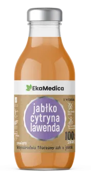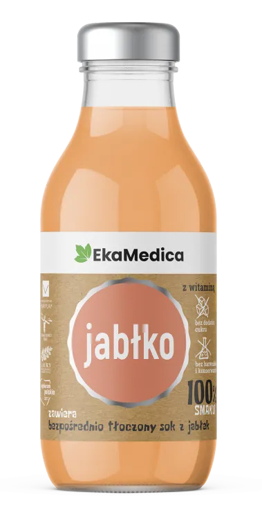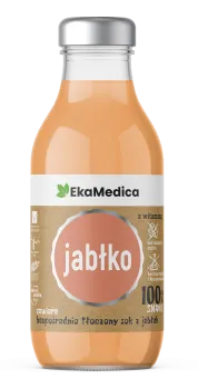 Suplement diety wyprodukowany z soku jabłkowego bezpośrednio tłoczonego z dodatkiem witaminy C. Pasteryzowany.