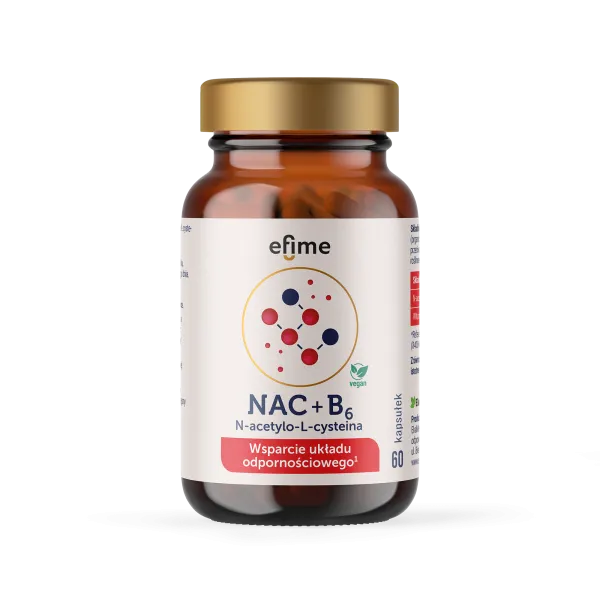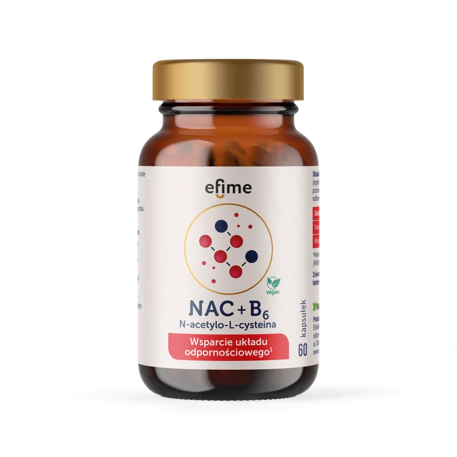 NAC - suplement diety w kapsułkach zawierający N-acetylo-L-cysteinę i witaminę B6